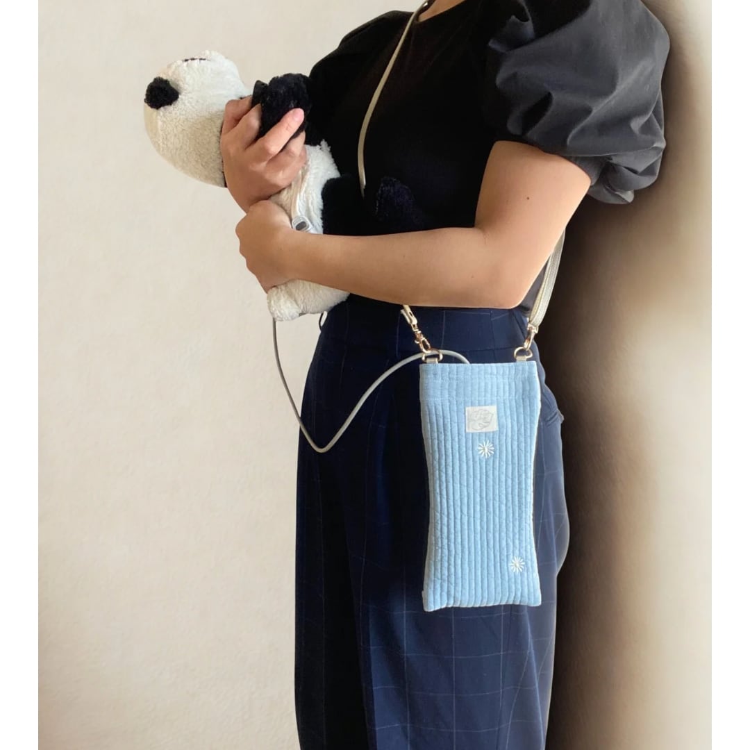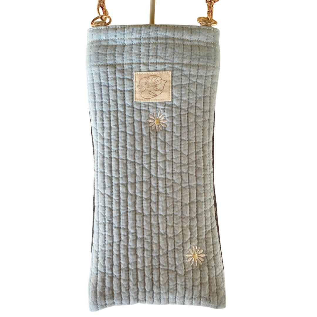 本体:グレーがかったパステルブルーに白いマーガレットの刺繍