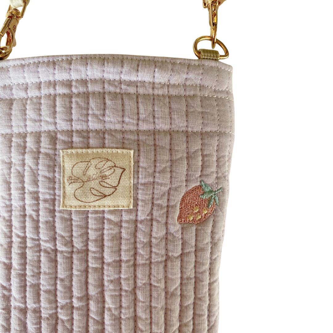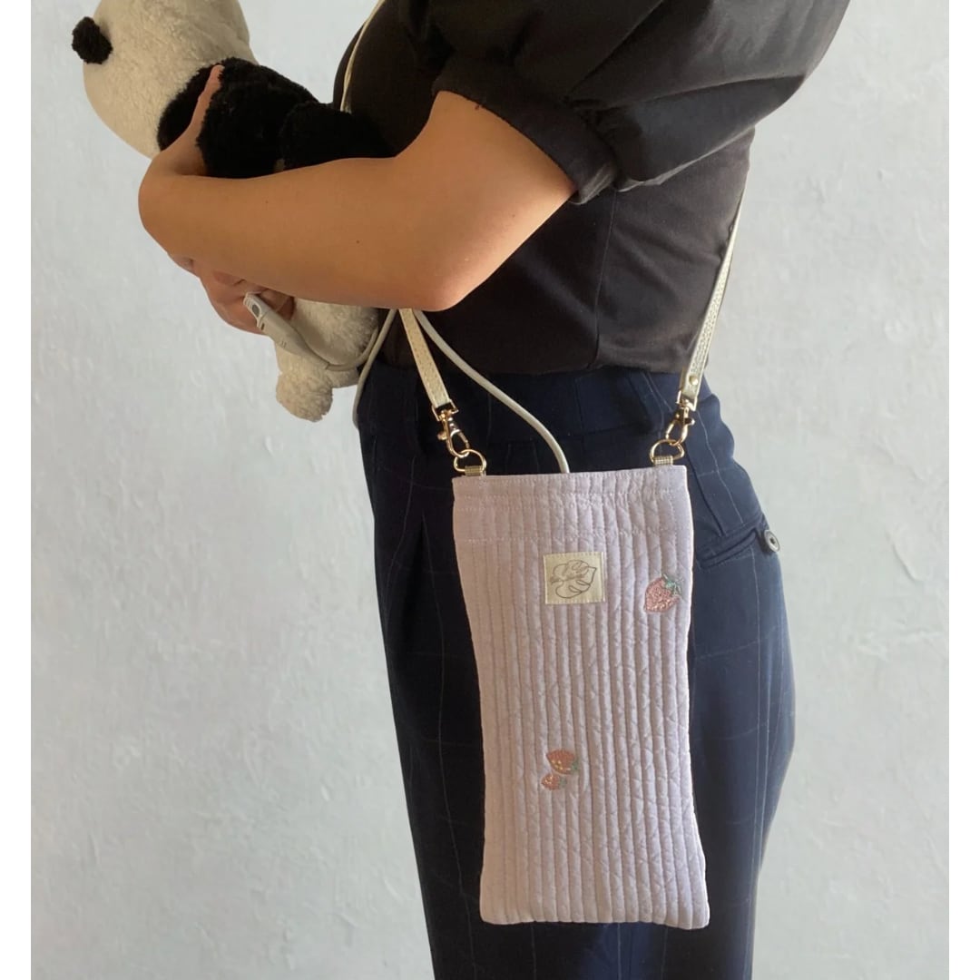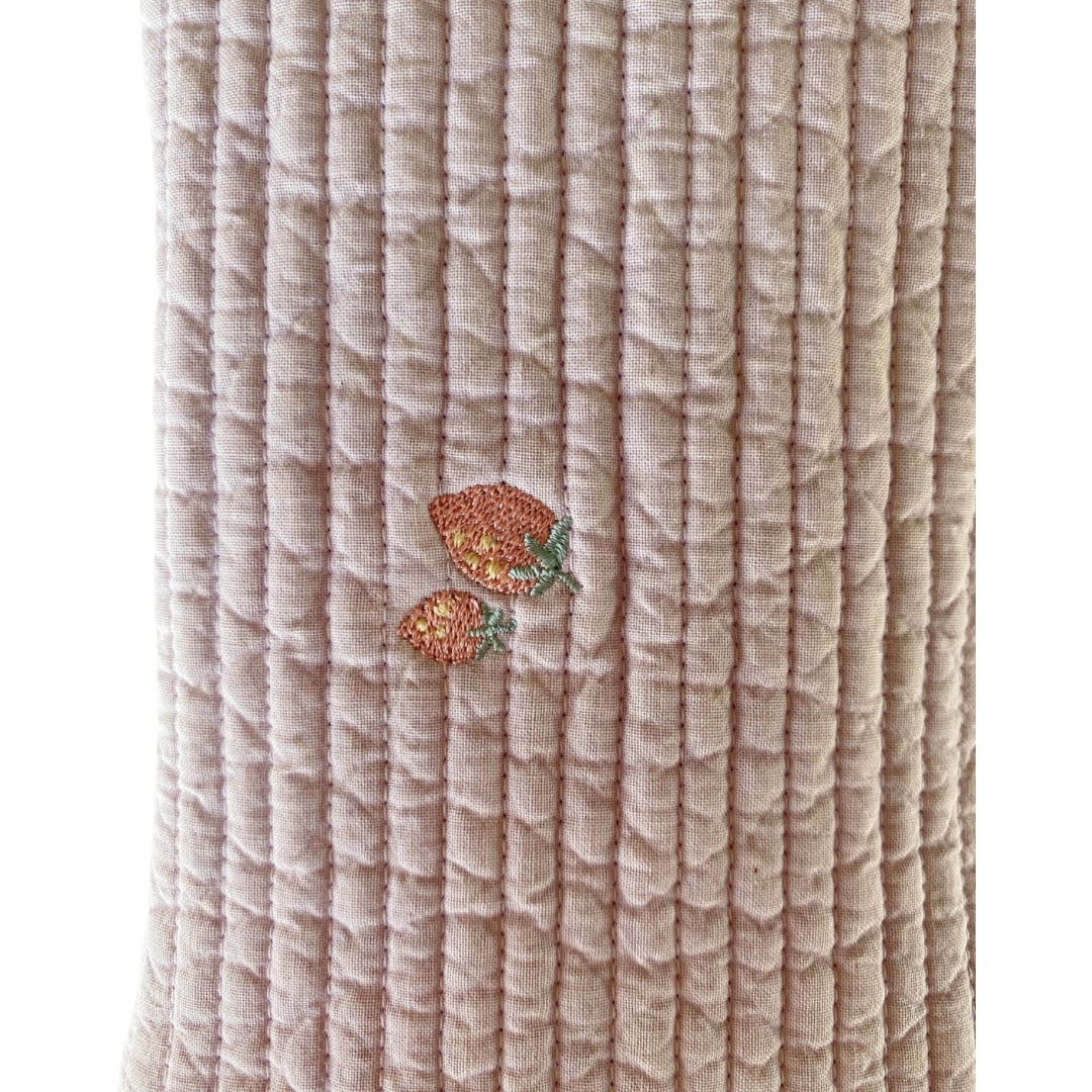 本体:くすみがかった薄紫色に苺の刺繍